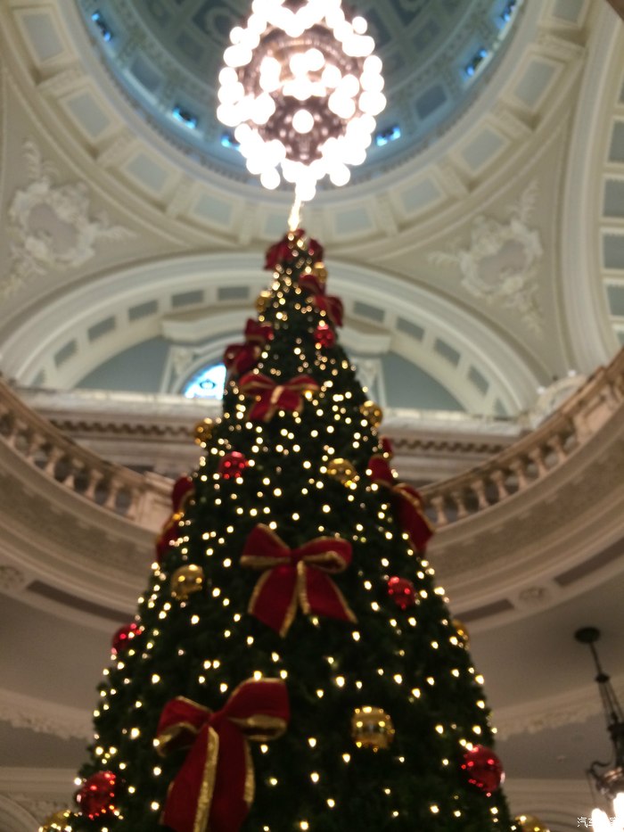 一进大门就是一棵巨大的圣诞树,和华丽的水晶吊灯,原谅手机的渣效果...