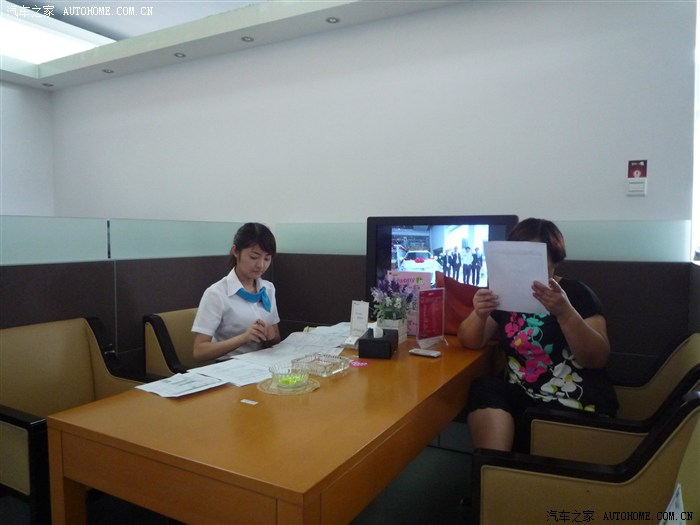 销售小妹认真负责办理验车手续。