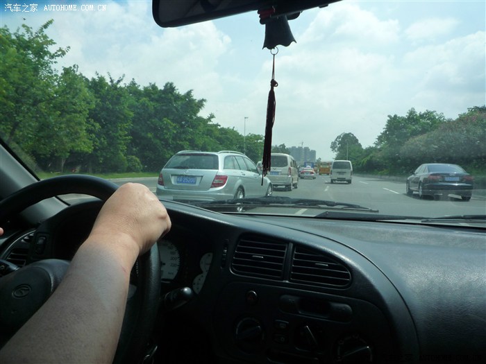 这是开着我的旧车,去生活馆验收新车的路上。