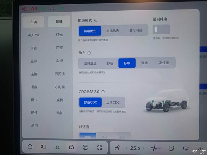 L8的动力也是很棒的,百公里加速可以达到5.3秒,配有5种动力模式,有后排舒适模式,舒适模式,标准模式,运动模式,高性能模式,日常我都是用标准模式,设了任务大师,如果后排有人乘坐就自动切换为后排舒适模式,主要是为了家人在后排乘坐的舒适性。