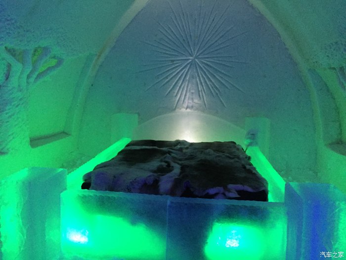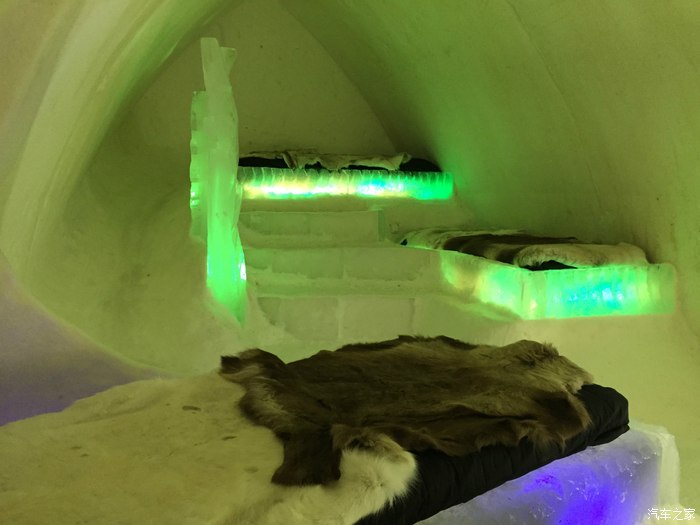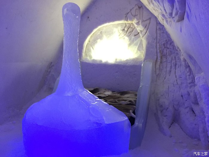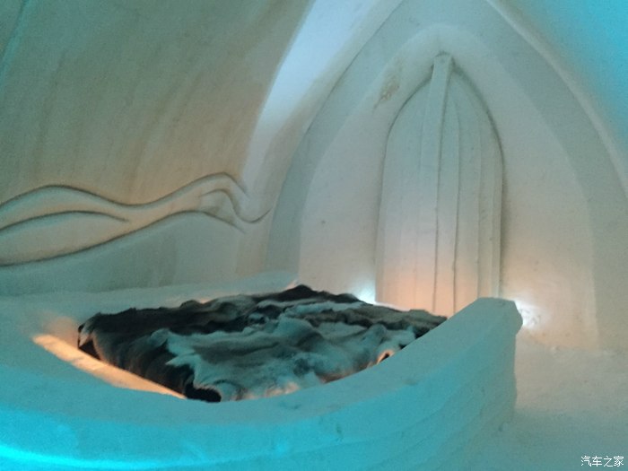这是我住的房间,室内温度零下五度。整个旅馆没有一砖一瓦,都是冰雪。