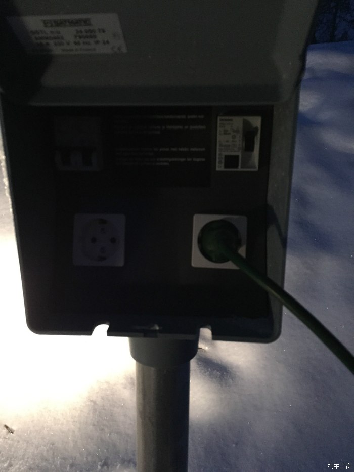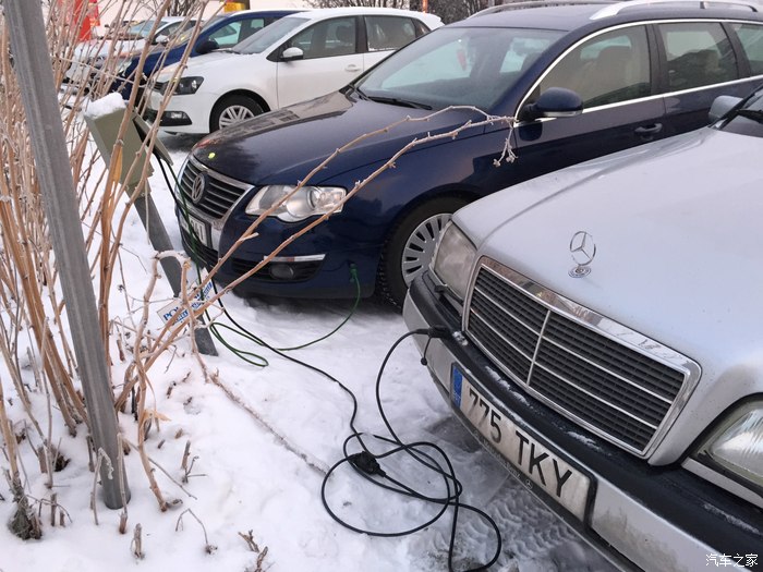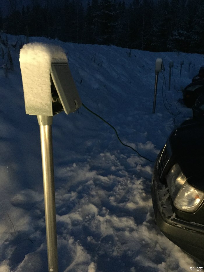 由于是极寒地区,每个停车位前都有电箱给车充电,防止第二天打不着,由于我租的车,找了半天也没找到线,算了,让它冻着吧,虽然它是柴油车。
