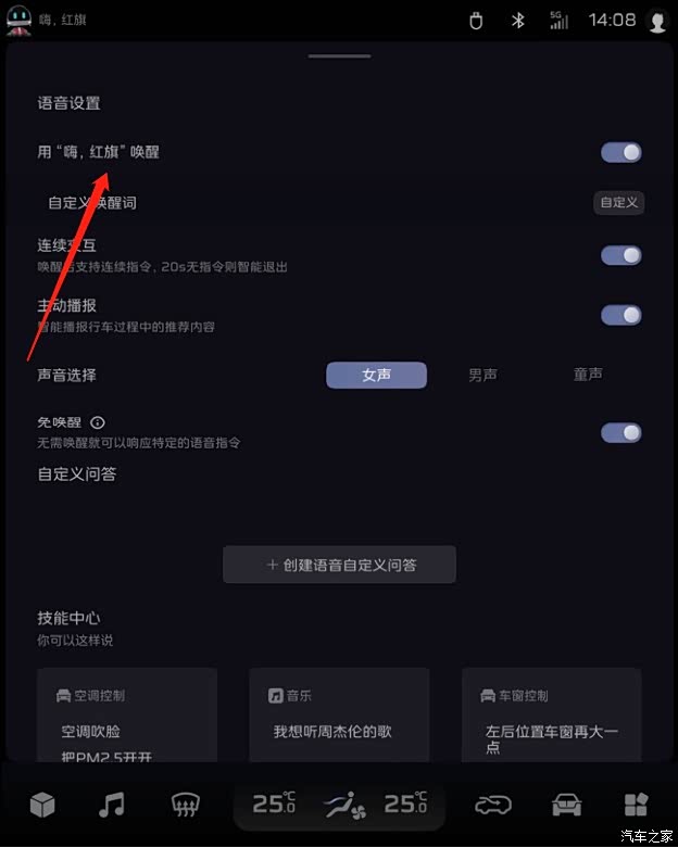红旗HS7开启语音唤醒的方法如下: