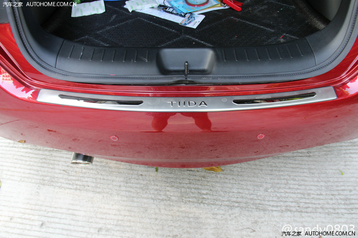 装饰:车膜是4S送的,不知道什么牌子,对车膜要求不高,只要贴上就行。骐达的后排座和后门玻璃颜色很深,贴膜后看起来基本没有变化,前挡和前排座选的颜色较浅的膜,不影响驾驶视线。倒车雷达也在4S装的,探头和车的尾杠有点儿色差。然后在TB上买了迎宾条、丝圈脚垫、尾箱垫、尾喉、杯垫等等,没买贴纸,因为我车上的贴纸现在撕都撕不下来。