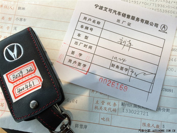 提车时候的单据,一张出门单,一张发票,一把钥匙,小弟的名字挂在上面,莫见怪o(∩_∩)o !