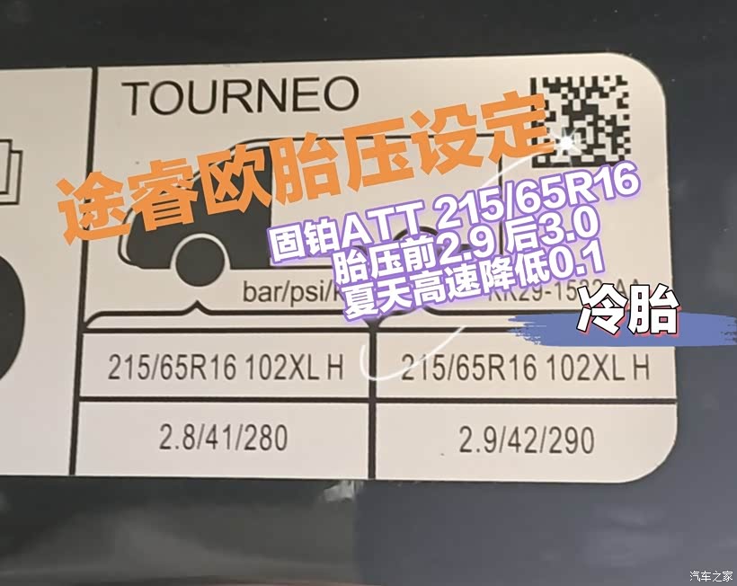 AT胎如果在一般的公路行驶建议把胎压打到2.7-2.9左右,冬天尽量打的稍微高一点,冬天轮胎不太好保压,其次就是如果太低了油耗会大幅增高,特别的明显,打3.0也没事儿