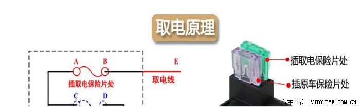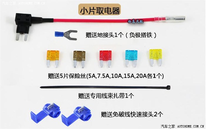 上图:这是某宝上的介绍图片,咱们的风神“3系”要用的是这种小片取电器,这个问题我在坛子上面请教了很多的车友,幸有前辈高人指点,要买小片的取电器,09款的说明书上却写着mini型保险丝,坑爹啊~~