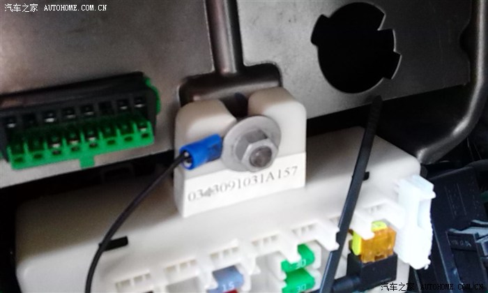上图:插到原车的雨刷保险丝的地方,鉴于线的形状和硬度,也只能这样了,无法走整齐。