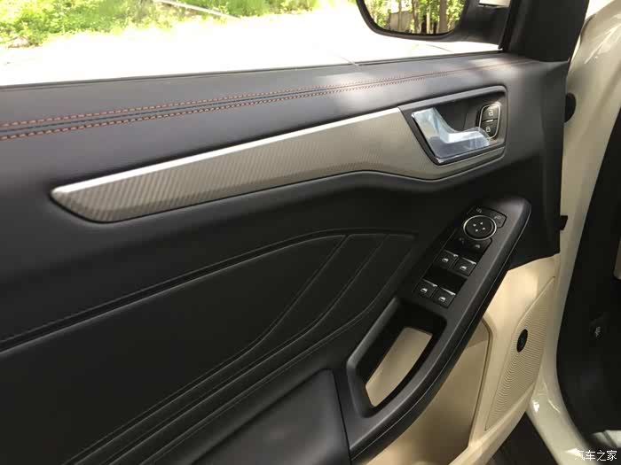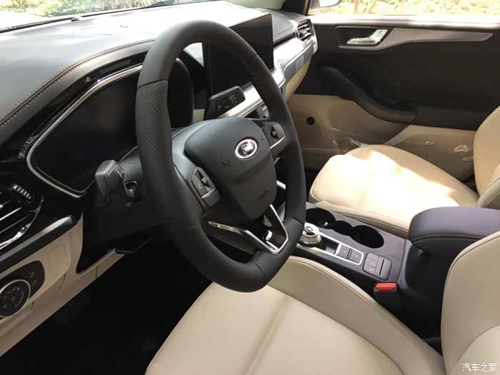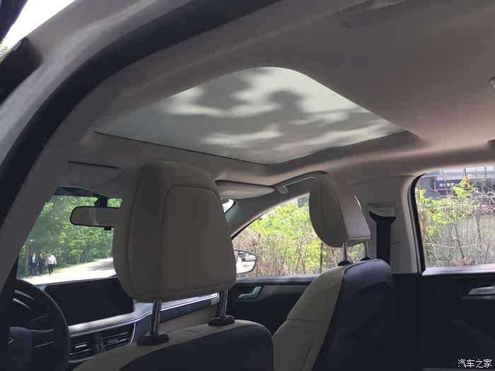 福克斯的内饰我也喜欢,中控台软的,方向盘皮质的,座垫皮加织物,看着大气,刚提车也没什么味道,用料厚道,现在好多了,车内的阅读灯在两边,夜间亮度够用,也不会伤眼睛,很柔和,还有中控的屏幕,SYNC+系统,可以语音操控功能,有时候早起没时间吃早餐就直接先驾车去公司,在车里,通过中控屏点外卖,很方便。天窗是双段式的全景天窗,车内光线特别好。后排空间宽敞,座椅也舒服,中间也有扶手,后排也有空调出风口,扶手后面还有一个小门,打开之后可以从后备箱拿东西。