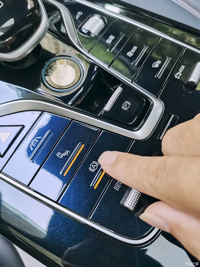 电子手刹加主动驻车的配置,市区走走停停,简化了许多操作。