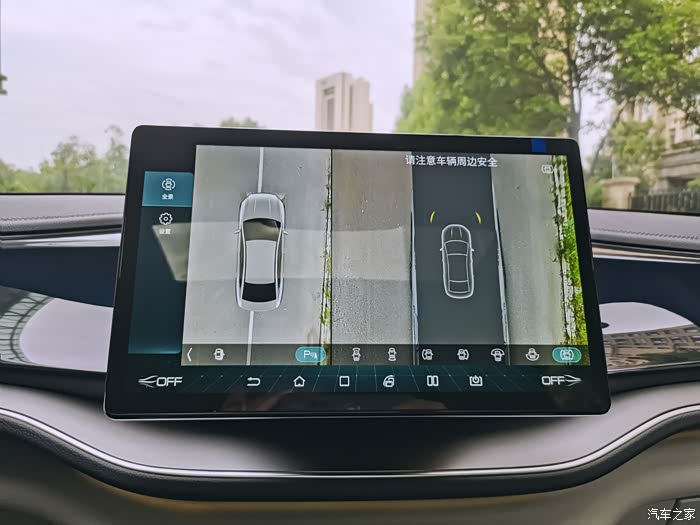 还有高清透明全息影像系统,摄像头分辨率很高,车身四周的画面拼接也十分自然,展示效果非常直观,能够让我清楚的把握周围环境,避免因为视野盲区而发生剐蹭或事故。