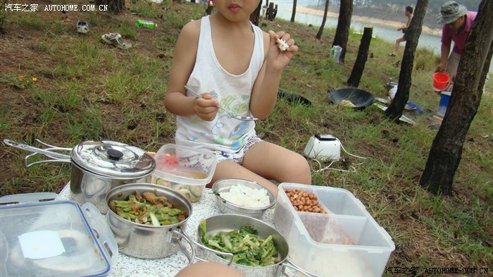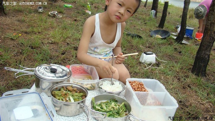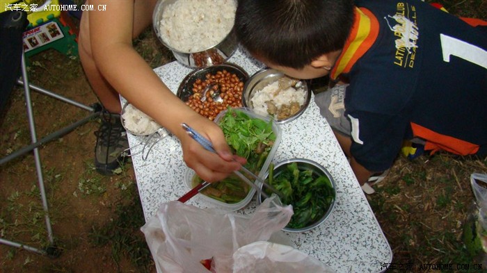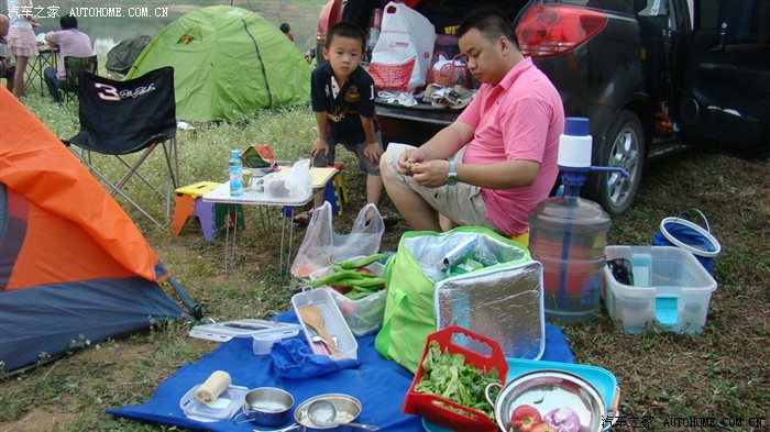 在准备我们晚餐的菜,菜是我们提前在家准备好,带去的。