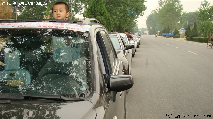 长长的车队,很是壮观,过往行人车辆,都是是看了又看。我儿子在观察前面车队的情况。