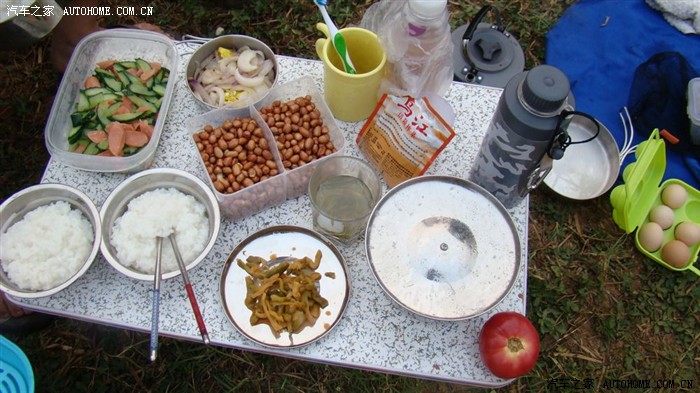 晚饭准备好了,3个菜,一荤一素外加一盘花生米。主食是米饭,不太会用这个炉子控制火候,米饭有点糊锅了。