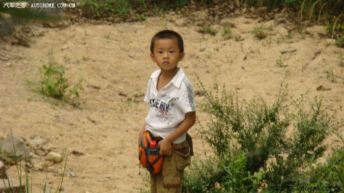 到了一个小镇,车队停下来,购买烧烤的食材,我儿子在摆POSE