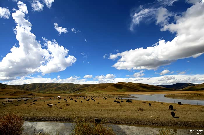 原计划走川汶213国道经由茂县、汶川再由S 9都汶高速返程前往【都江堰】,车程约6 小时,但因前日川汶213国道茂县段山体严重滑坡,造成交通中断,通车时间未知,只好绕行若尔盖草原的边缘经红原县/理县/汶川/ S 9都汶高速返程前往【都江堰】,历时约 13小时。由于行程的改变让我有了意外的收获,看到了若尔盖草原的蓝天,湛蓝的天空蓝的让人陶醉。