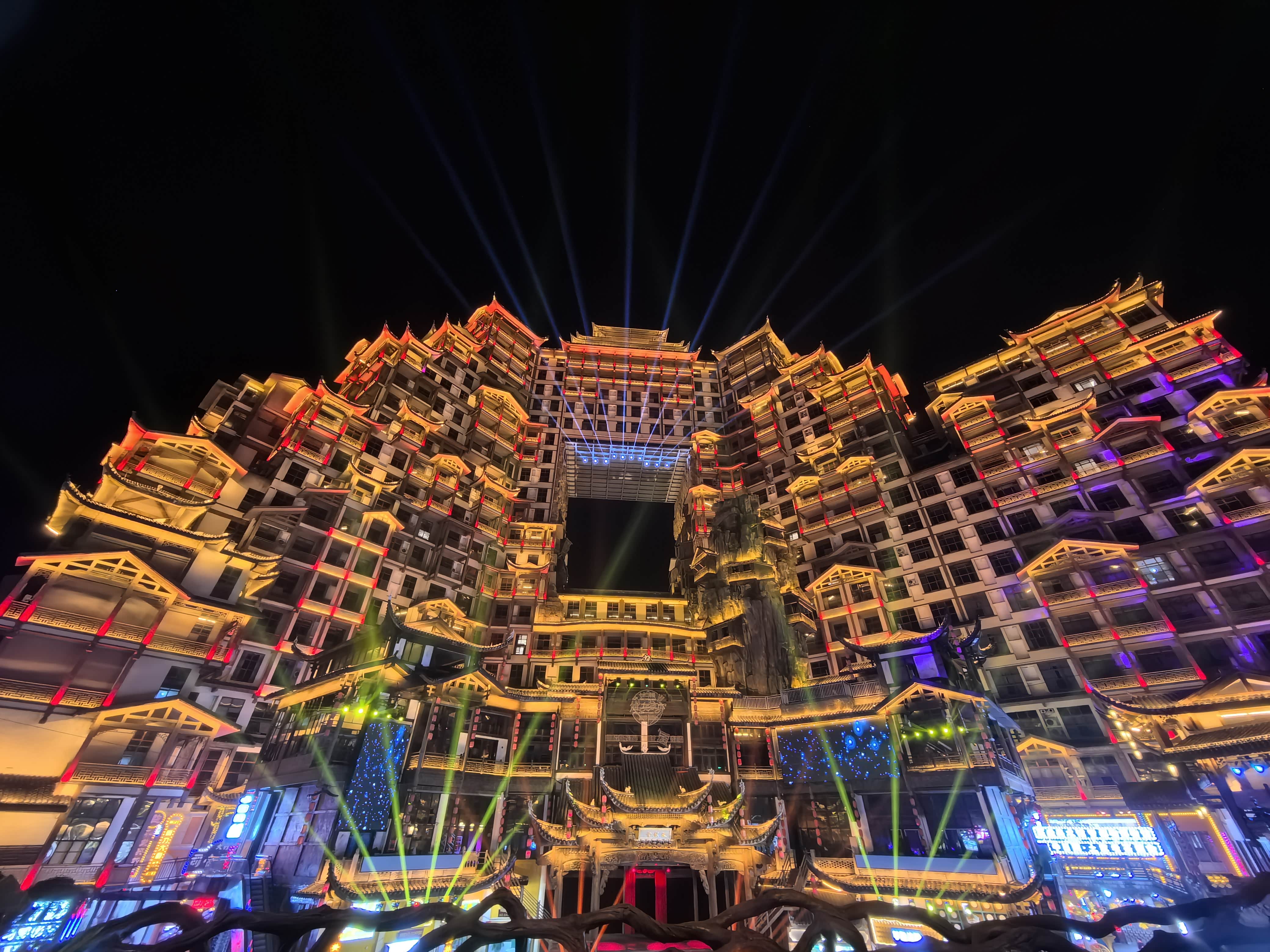 凤凰古城呆了两天,继续前往第三站-张家界。为了便利,我们选择了天门山索道口附近的酒店入住。晚上打开地图寻找美食去处,意外看到推送的七十二奇楼,马上订了门票前往。张家界好多年前来过,但这景点算是第一次知道。七十二奇楼是世界最高吊脚楼,晚上夜景很美,灯光溢彩,如幻境一般。里面汇聚湘西非遗民俗与特色美食,集建筑、文化与光影于一体。第二天一早,出门就可以登上天门山索道,乘亚洲最长索道,穿云海,踏鬼谷栈道,俯瞰群山,尽享惊险与磅礴之美。