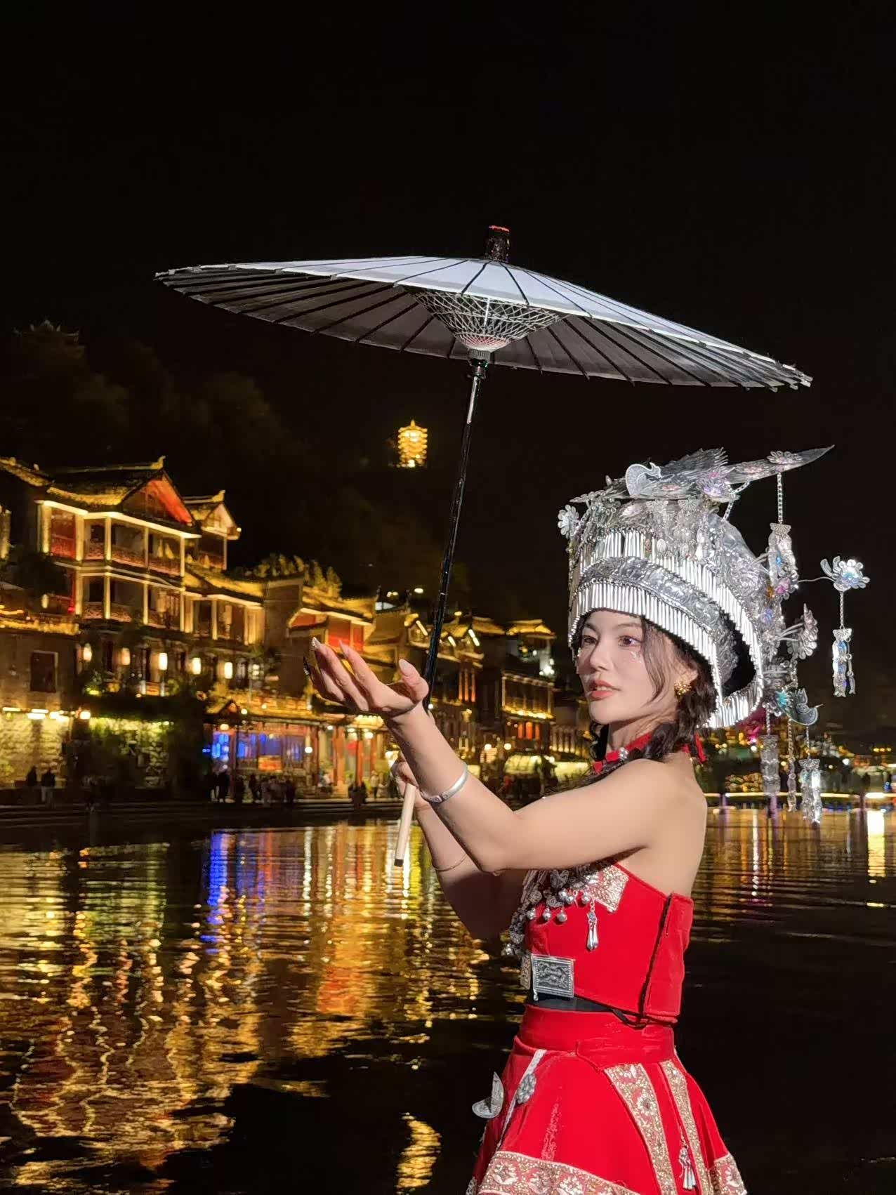 长沙呆了两天,我们继续前往第二站-湘西凤凰古城。路途400+公里,开了5+小时,辅助驾驶功能确实能让长途驾驶变得轻松许些,但不能过于依赖哦,安全放第一位。来之前在小红书联系上一家民宿,提前预留了江边观景房。夜晚华灯初上,推开窗便是潺潺水声和点点灯火。沱江两岸的吊脚楼倒映在水中,美得令人屏息。沈从文笔下的边城如今已是一派繁荣景象,但依然保留着古朴的韵味。虹桥风雨楼、万名塔、跳岩......每一处都诉说着古老的故事。媳妇对民族服装的钟爱是刻骨子里头,苗族、彝族服装换着拍大片,冷在此刻已经不算什么了。