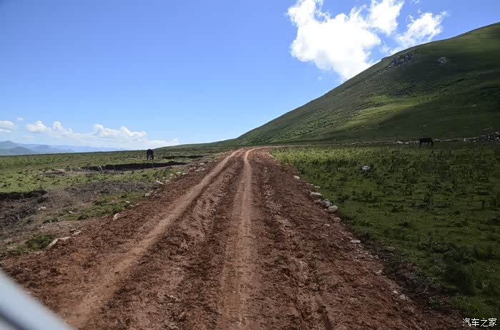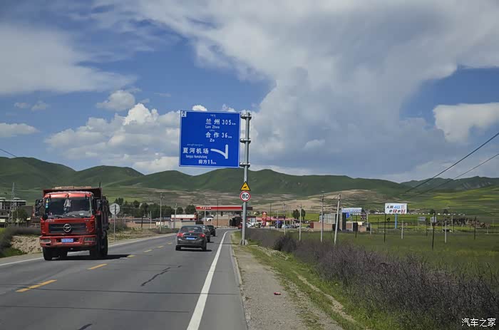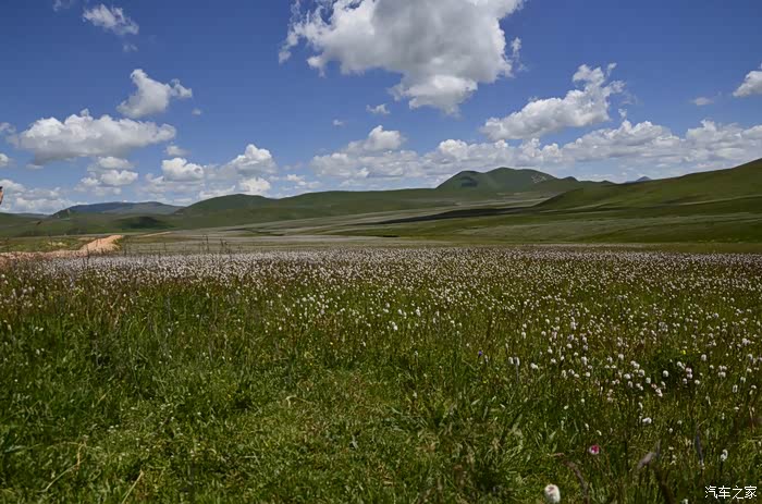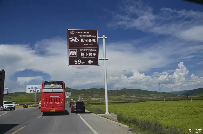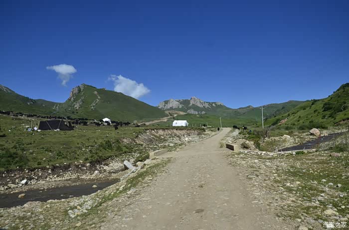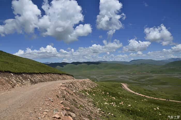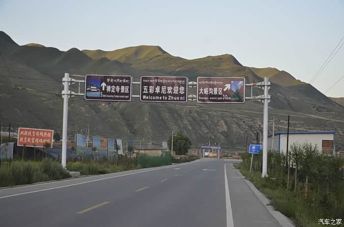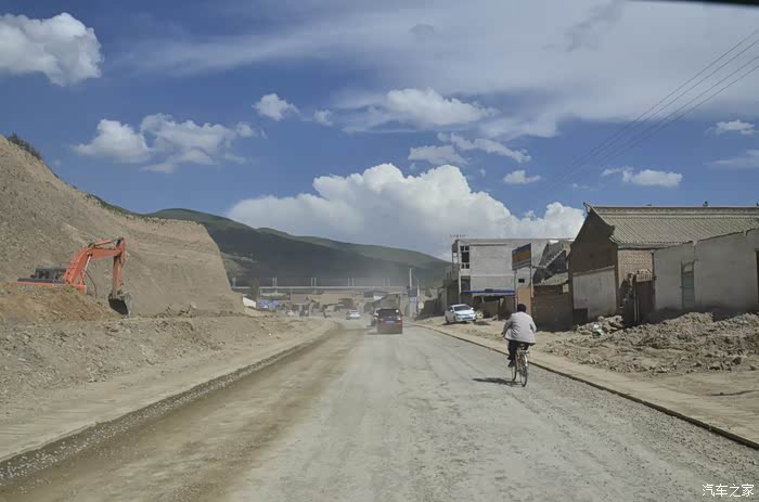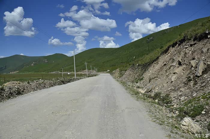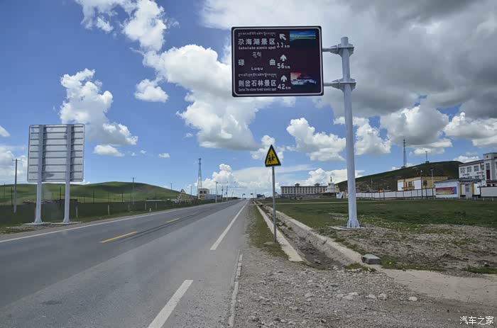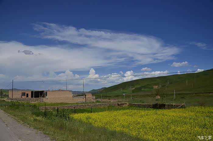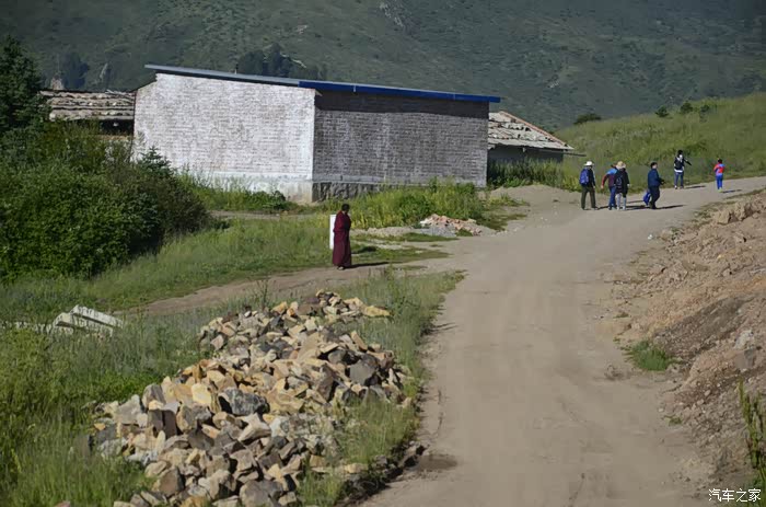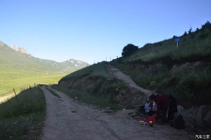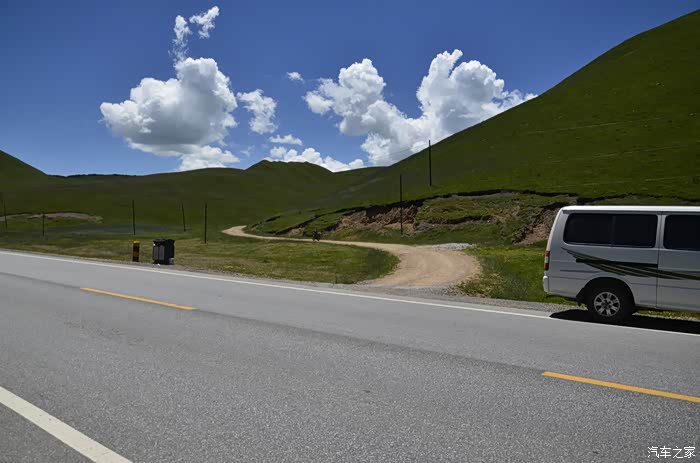 驶上213国道,这条土路就是进入花海的路,此地距郎木寺应该有10多公里。(可以把垃圾桶作为一个标志。)