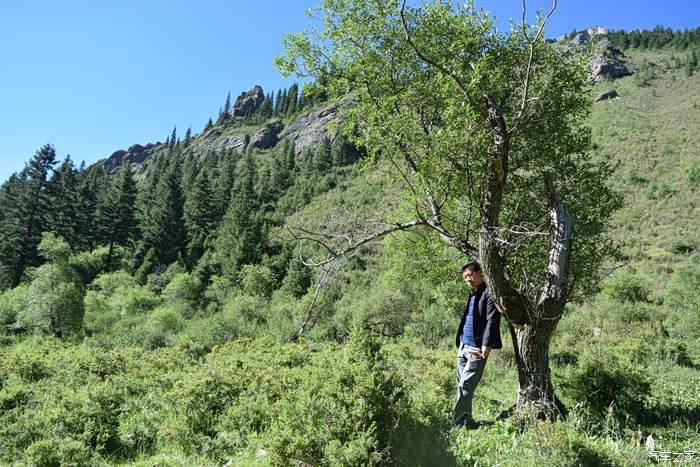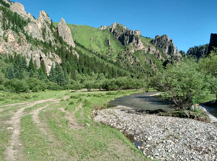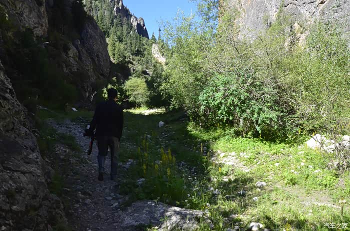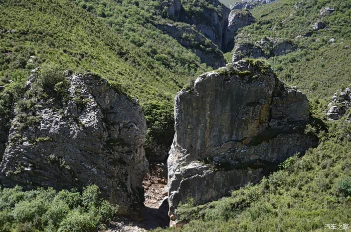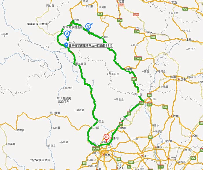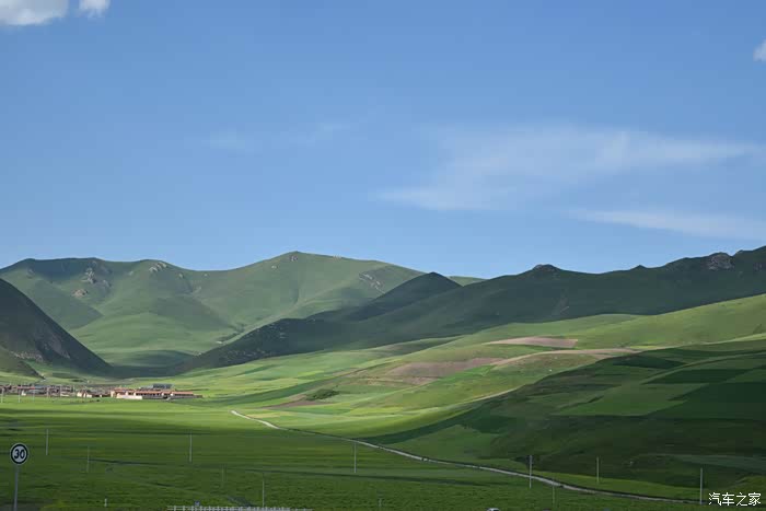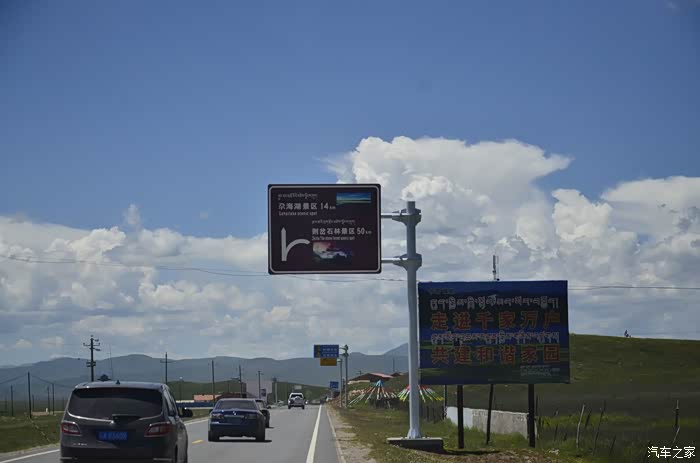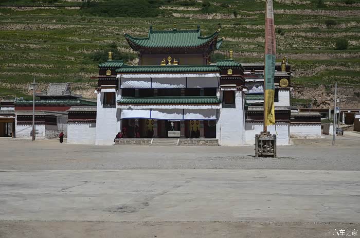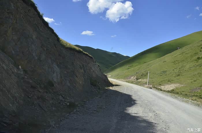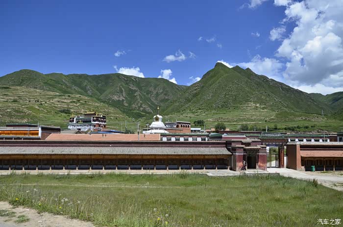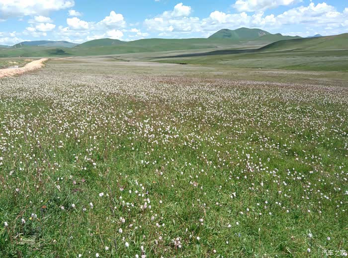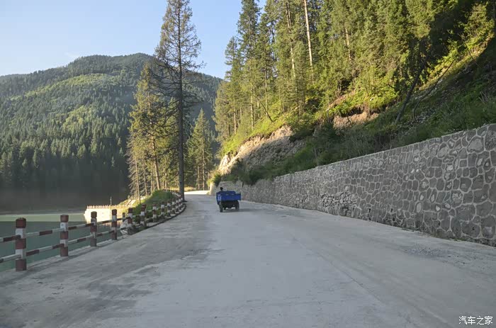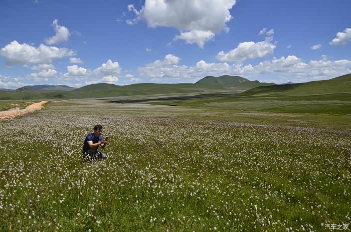 驶上213国道,这条土路就是进入花海的路,此地距郎木寺应该有10多公里。(可以把垃圾桶作为一个标志。)