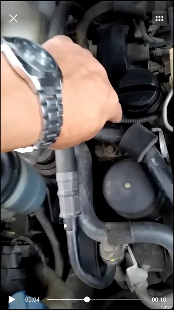 这根波纹管连接的就是。为了方便拆,我把转向液壶和冷却液副水箱壶的螺丝都拧下来了,方便动手。