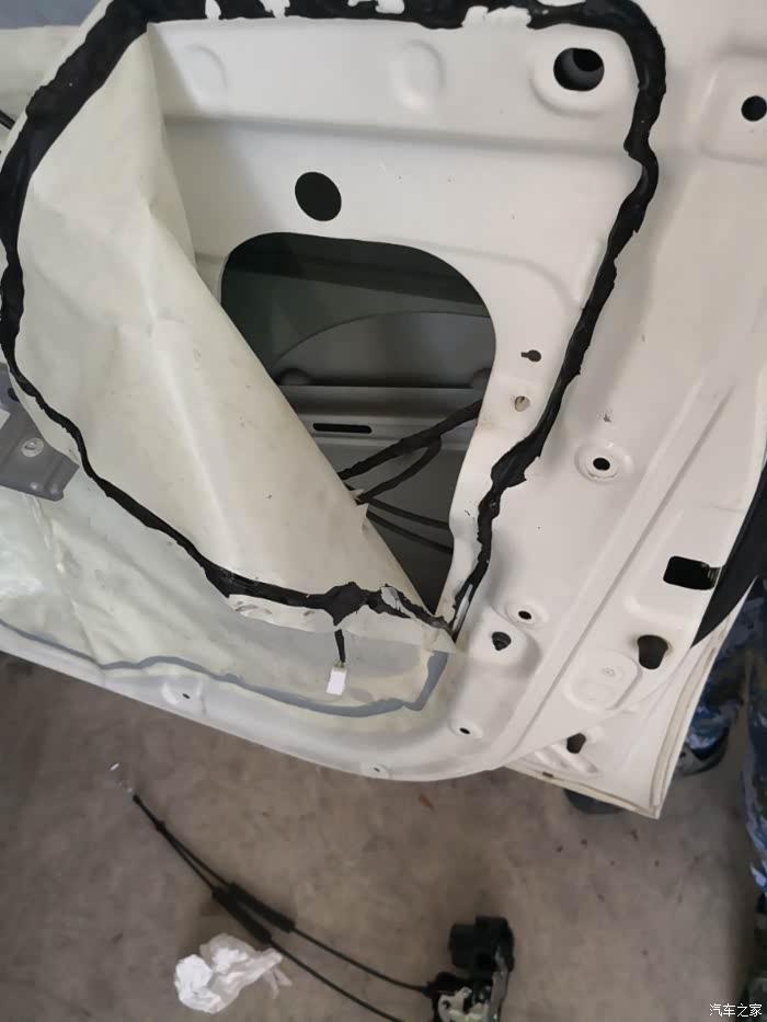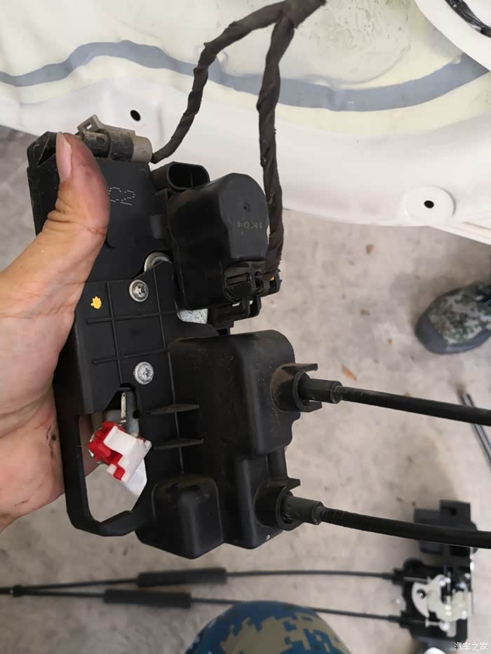 内衬与门有两个电插销和车门线连接。记得拆时慢点别硬拉。拆下来后把防尘膜撕开拧开门锁螺丝就能换了。记得锁部位有个螺丝和一个塑料卡子