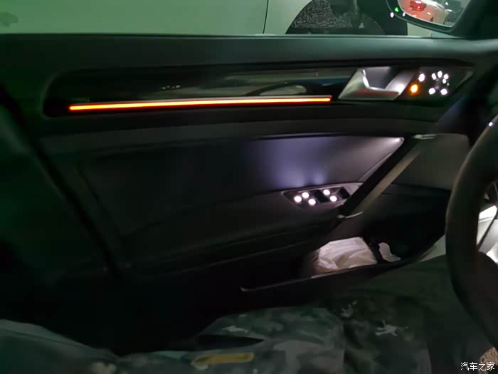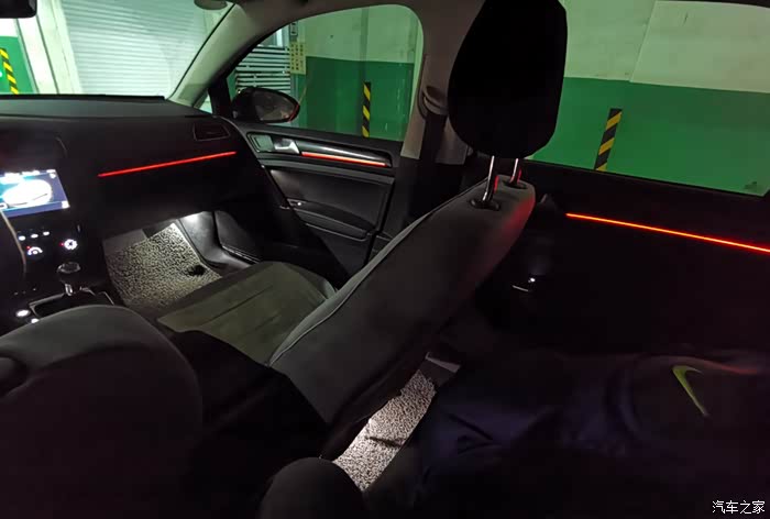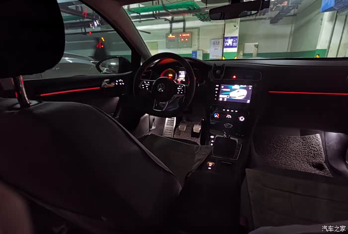 7.原厂亮黑内饰板(仪表、左右出风口、中控屏、空调、盖板)、全车原厂GTI红色氛围灯,新增副驾驶手套箱上方氛围灯、后门氛围灯、后排脚底灯、主驾驶双脚底灯,GTI黑色蜂窝内饰板;