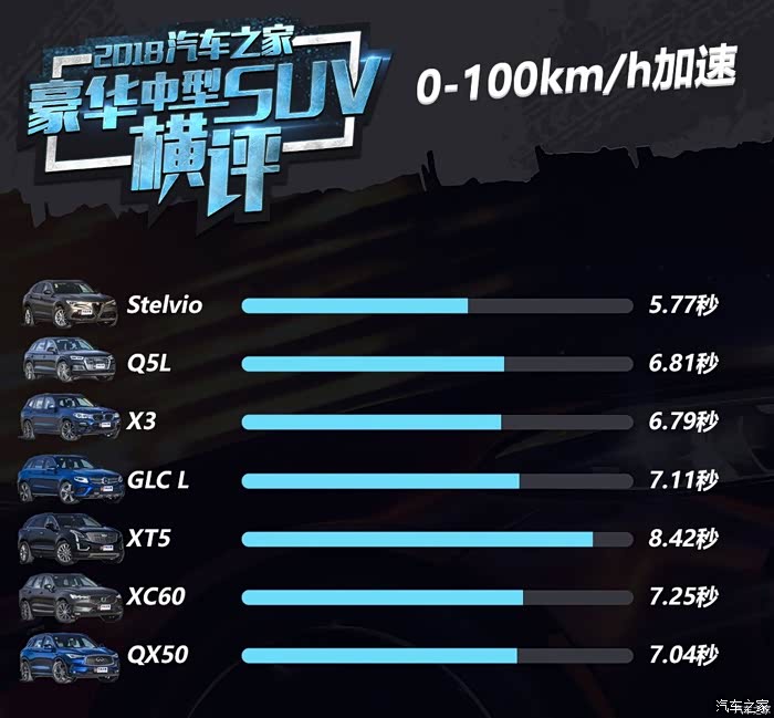 汽车之家官方实测7.04s,来源:汽车之家《动态表现 豪华中型SUV横评》,网上各种测评范围基本在6.9 - 7.8s之间