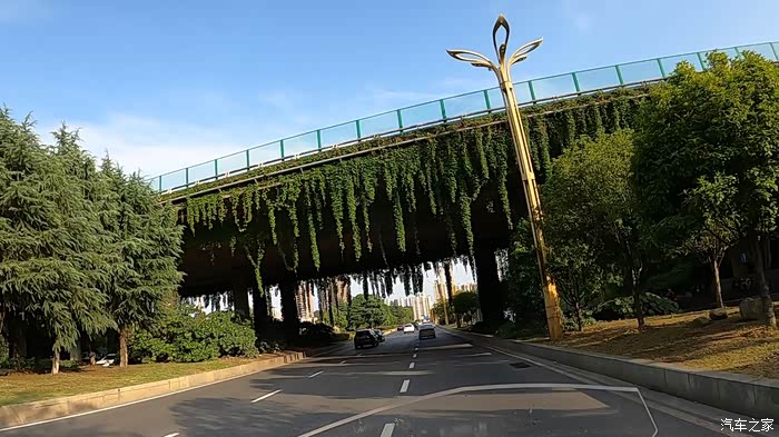 绿色的藤蔓悬挂在高架上的景观比较少见的