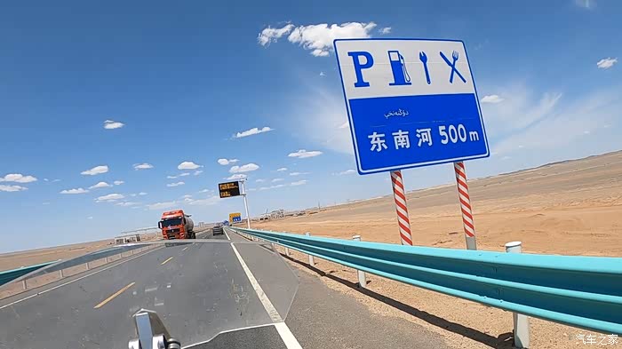中间有个服务区,没有油加,可以餐饮和休息