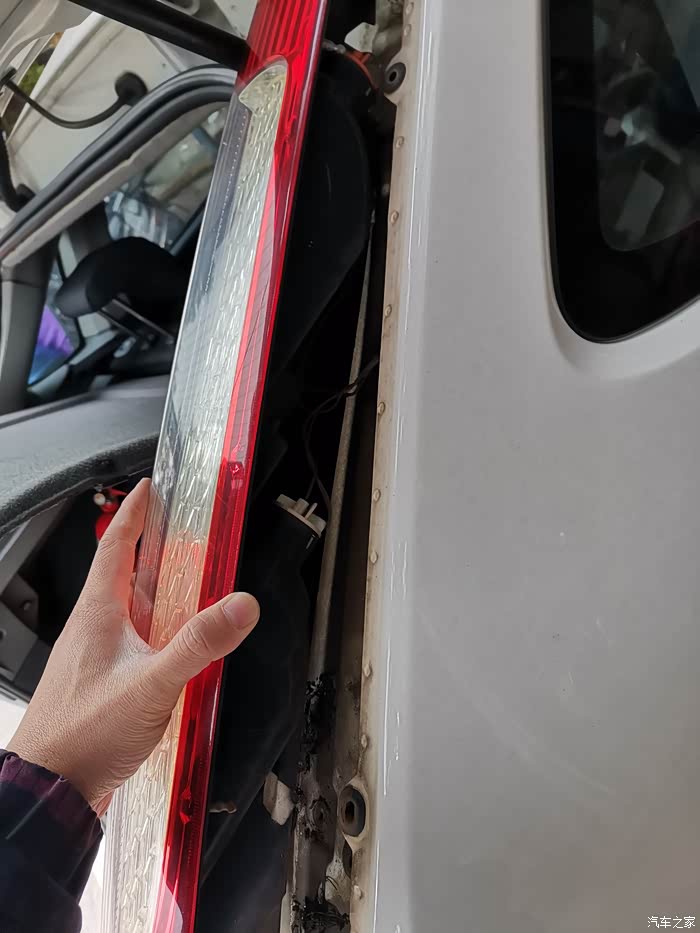 换尾灯炮就比较简单了,总共两颗螺丝,两个卡扣。拧出两颗自攻螺丝,扣住尾灯往上抬就能看到灯座了,弄出来换上新的灯泡,按相反步骤安装,新的灯颜色很正。
