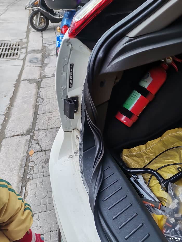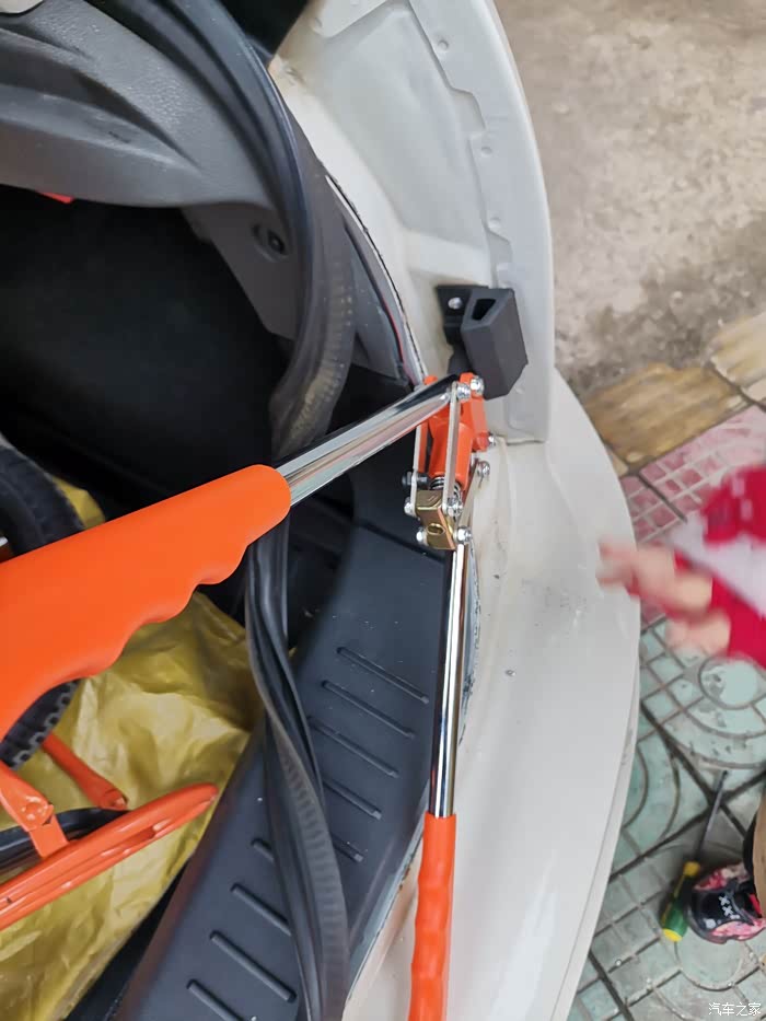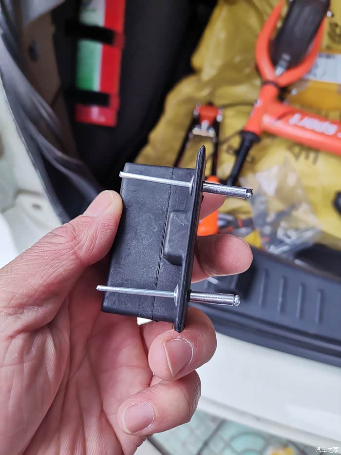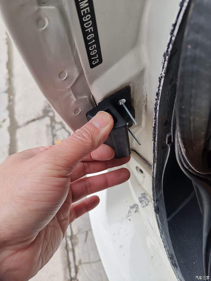 工具很简单,一把手电钻,一把十字螺丝刀,一颗大号水泥钢钉,尾门缓冲胶是用铆钉固定的。先把尾门胶条扒开,在用电钻把铆钉头钻掉,然后用这个大号水泥钢钉把铆钉敲进去,因为铆钉固定原理就是膨胀,往外肯定是拔不出来的