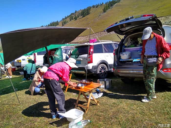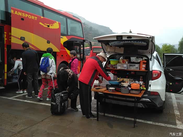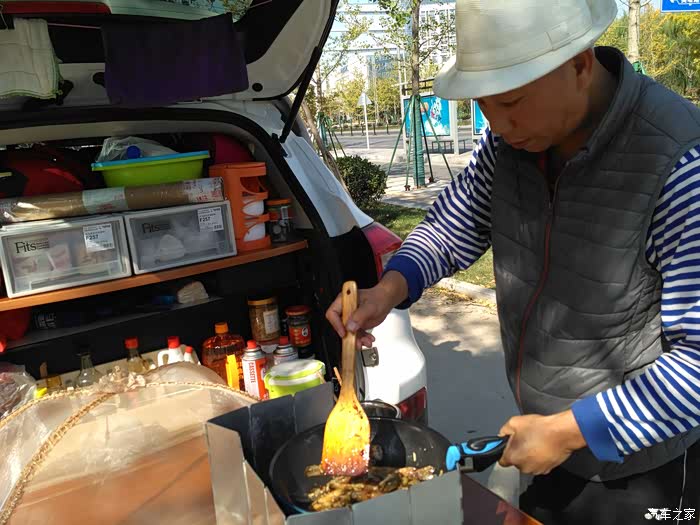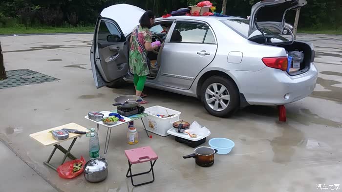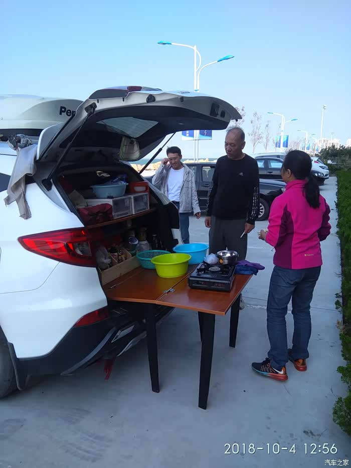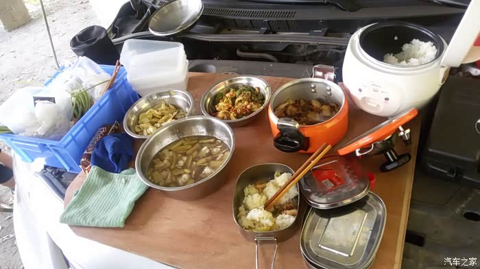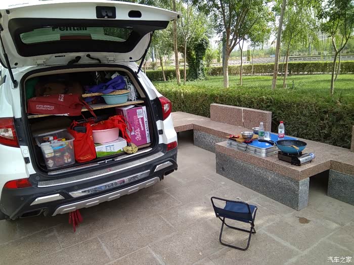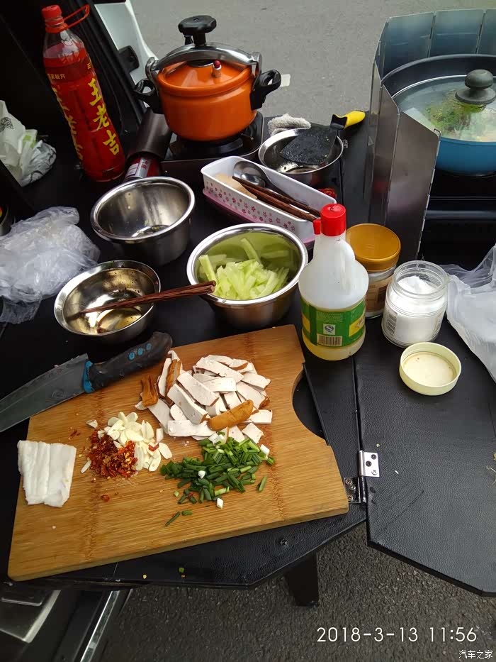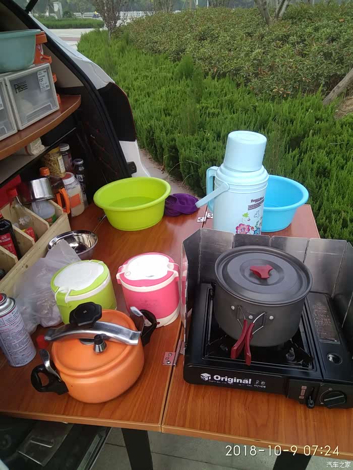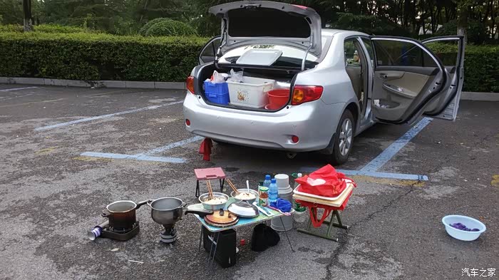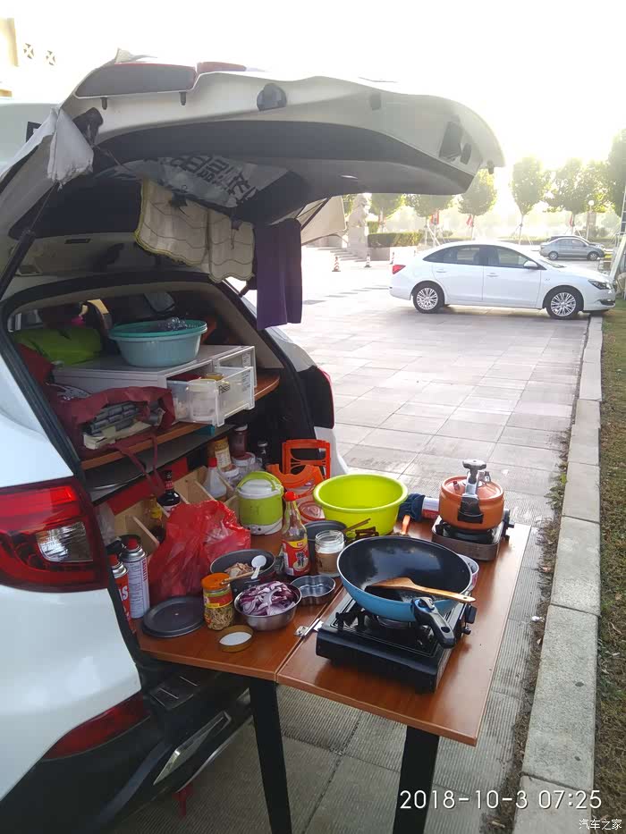 最近连续几年远距离自驾穷游,而且是在车上吃住,感觉做饭的环境应该改进一下,我买过二个小床桌,也买过四椅连桌饭桌,今年又换过折叠桌,多次使用后感觉收放是个大事,体积大占地方,搬上搬下费劲。今年7月,49天新疆南北环游回家后,我又做了改进,上部设置六个抽屉箱,下部设置三个置物箱区,一是暖瓶区;二是炉灶区;三是锅盆区;置物箱根据尾箱斜度制做,下宽上窄,占用空间约30公分,高度42公分,长度一米,箱门为一米长,42公分高,安上铰链,装2个折叠撑杆连接,倒下门板就是一100X40的案板,经过试用,还行!外出不用带桌子了,也不在地上和车头做饭了,现将改进的床车汇报给大家,请多指教。