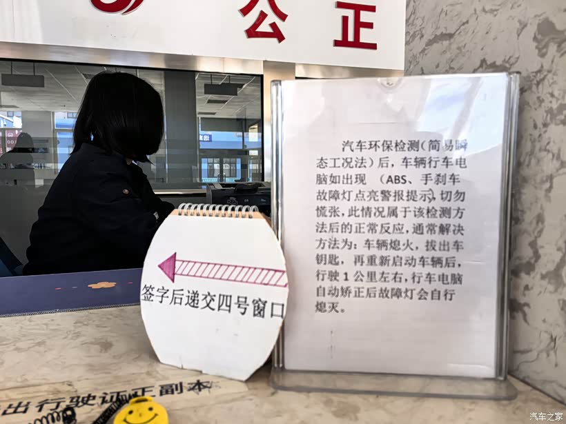 去服务台交上行驶证和180大米,就拿到了检车单,再拿出三角牌