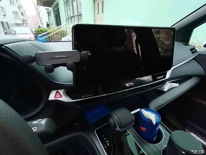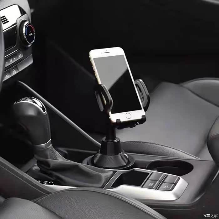还有车友用的是图里这种放在杯座里的手机支架,但是我自己感觉这个位置用着不如上边那种顺手,所以没有选。
