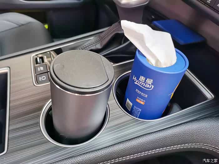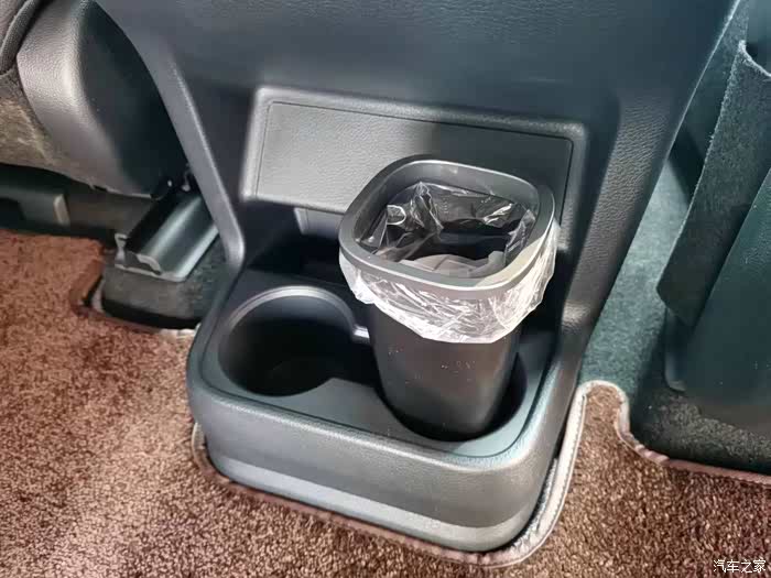 要问赛那车里什么最多?答案必然是水杯架!赛那有多达19个水杯架,这么多的水杯架,只放水杯肯定是用不完的。所以,为了充分利用这些水杯架,我买的两个车载垃圾桶都是放在水杯架里的,缺点是容量不大,装不了太多。至于长途出行垃圾多的时候,直接用可粘贴的一次性垃圾袋解决。