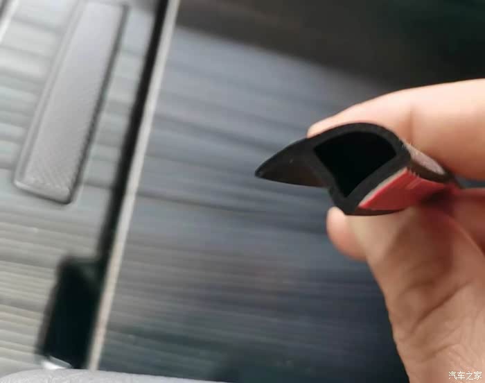 不过以防万一,我还是参照论坛车友的建议,买了一根汽车密封条粘在了盖板边缘,效果如图所示,能够有效地挡住一些小物件,看上去也不算很突兀。大家如果需要的话直接在某宝搜索“汽车密封条”即可,型号我选择的是“平底小P”,选“平底大P”的话应该也可以。一般一买就是5米,需要自己裁成合适的长度,密封条背面自带粘胶,直接粘上去就行。粘的时候有一个小细节需要注意:不要粘的太靠近边缘,要留出3毫米左右,否则在下边会被挤住,影响盖板的正常开关。