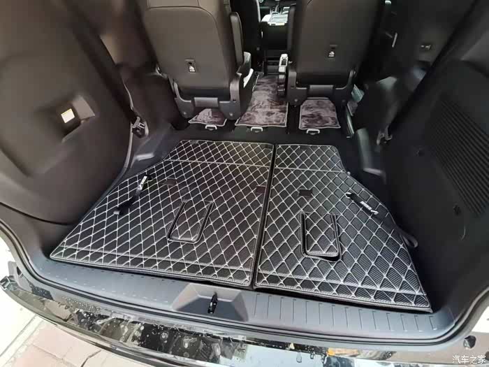 后备箱垫我用的是图片里这种,感觉一些细节设计得还不错,保护得很全面,挺好用,也没什么味道。如果不喜欢这种格子的,也可以选择所谓肤感皮的。至于后备箱下层,由于第三排座椅基本上是长期收起的状态,所以没有买全包的,买了图中这种TPU材质的,几十块钱,很便宜,也没有异味,主要是防止放一些可能出水的东西把后备箱弄湿。唯一的小缺陷是没有把三角牌的位置留出来。