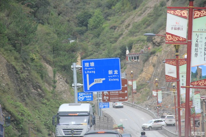 第二天:9月20日,7:00出发,8:35到雅安,吃早餐,9:45在天全第一次堵车,约15分钟,天全县城前后路特烂。雅安到二郎山,保灾后重建物资运输,三个路段单边放行,加上路烂,110公里,足足走了6个小时。再经泸定、康定,翻折多山,19:00到达新都桥(海拔3387米),住巴金客栈(35元/床),行程493公里,累计行程950公里。