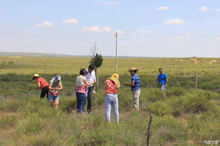 半路经过一片沙葱地,沙葱长得极好,下车摘拣。一片欣欣向荣的劳作景象不!