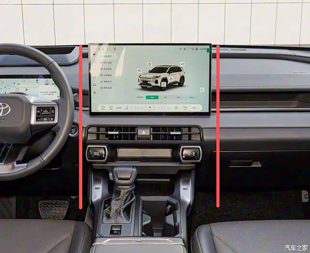 无解。15.6寸这套中控方案是和汉兰达、陆放一致的,大批量可以均摊开发和物料成本。但是这个尺寸居中安装,方向盘右侧盘辐会遮挡大屏幕左边,只能向右移动。其实在驾驶位感觉不出来别扭,从后排看过去才是错着的