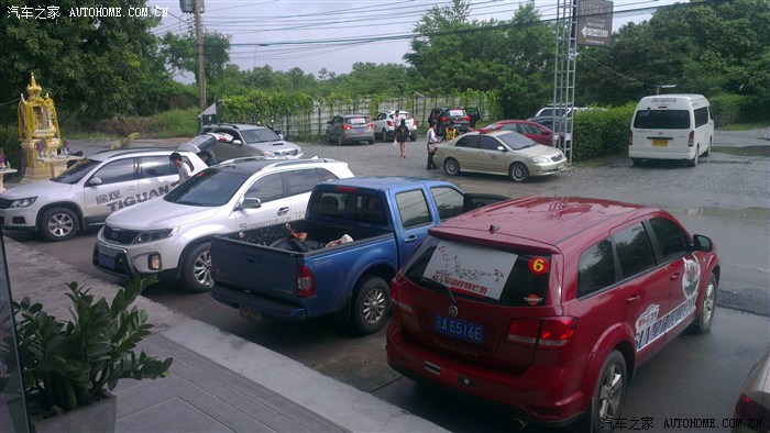 昨晚到酒店的时候就发现有国内的车,早上出来,没想到还挺多,聊了下,云南的,自驾游,20几个人,7台车,还有泰国旅游警察同行,看见远处了吗?两个警车啊,一前一后。