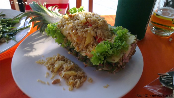 菠萝饭,没拍好。很好吃,不是甜味的,里面有虾,有鱿鱼,有腰果等。吃饱走人,买单是1940泰铢,好便宜啊,不到400人民币。真受不了,每天吃饭都好几千的。