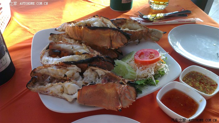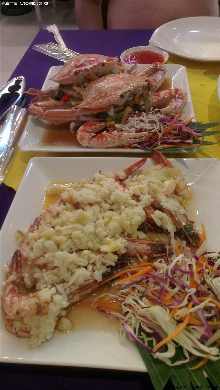大龙虾,那个小哥跟我推荐的吃法,还是那句“a little bit 辣”。鱼换了个品种,比昨天的贵,但是鱼做的没那家好吃。因为是回头客,不仅打折,还给了个朋友价,大龙虾只要了我1700,也就是340块人民币,很好吃,其他的也都相应打折价+朋友价。今天这顿很值,吃了2000多,也就是400多RMB。吃完老婆又去夜市买了那种蒸出来的100块的2只装螃蟹。