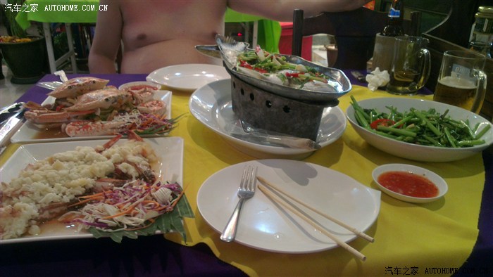来这里的中国人都说冬阴功很好,但是鉴于廊曼机场的教训,我很谨慎,先来一个,好吃再来。结果是,真没很多攻略里说的那么好吃,因此也就没再点。难道,泰国的生姜真的不要钱吗?结账,走人。擦,这顿饭干了快2000,擦,真吓人,好在是泰铢。不记得餐馆的名字了,还不错,海鲜全是BBQ的做法。