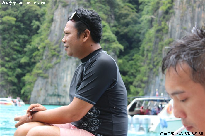 我们的导游,泰国人,粉色大哥,自称Co Co Chanel No 1,是莱昂纳多的女朋友,什么都是粉色的,包括给我们带的腕带,他自己用的记事本,全是粉色。有点娘炮,但人真很好。是我见过娘炮里,肤色最黑,皮肤最差的,跟国内娘炮还是有区别的,起码人家出海啊,胆大啊,遇到大风大浪很淡定。