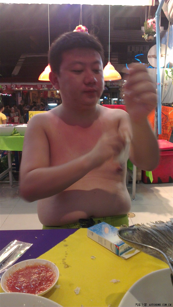 手机拍的,单反拿着碍事。这地方,衣服都不用多拿,从第2天开始我就知道不穿上衣是种时尚,可惜了我没Tatoo。还是沿着海滩去搞海鲜。