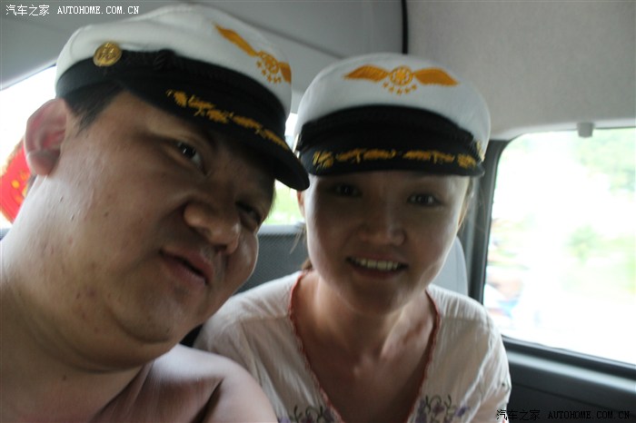 跟船员拍合影,真喜欢这帽子。