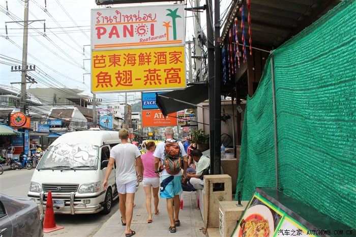 话说我check out之后,依依不舍的走出了度假村,坐着7公里啊,60多人民币的面包车,直奔芭东海滩。泰国的出租车分两种,一种是打表的,一种是砍价的(不知道是不是黑车)。另外,泰国以日本车为主,德国车少见,不过在普吉也偶尔能看到老款的3系,新款的E级,Q3, 还见到了兰博基尼和敞篷版的雷克萨斯。最常见的是各种改装过丰田11座的商务车,去过普吉的朋友知道,商务车改轮毂,加大包围,换前唇什么的太多了,可惜的是我都没拍,真顾不上,下次吧,多拍拍。