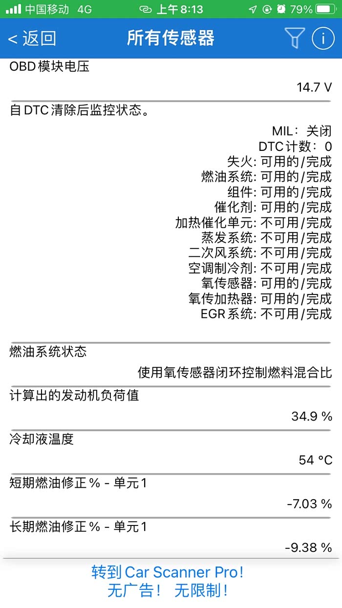 自己买的OBD检测的,这些正常吗?发动机没有故障码